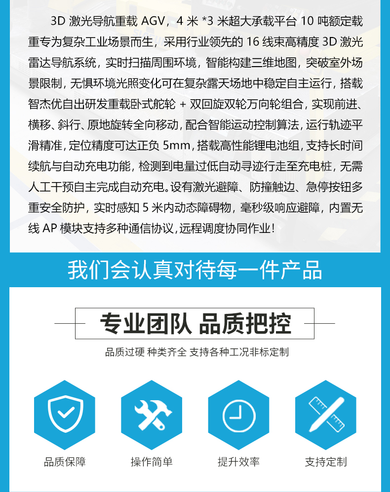河南智杰優(yōu)搬運(yùn)設(shè)備有限公司以“質(zhì)量取勝,服務(wù)取勝”的經(jīng)營理念,為了客戶的利益,公司建立了一整套快速的質(zhì)量信