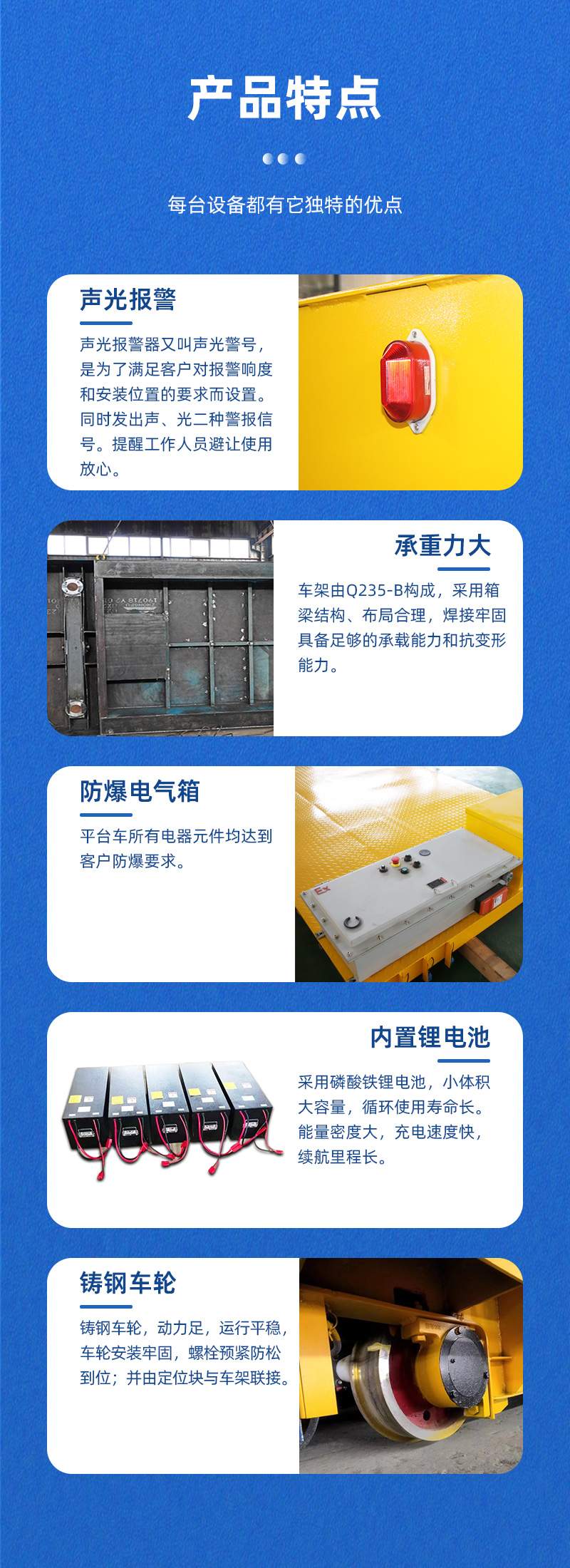公司保障:電動(dòng)平車、軌道平車的承重安全系數(shù)不低于60%