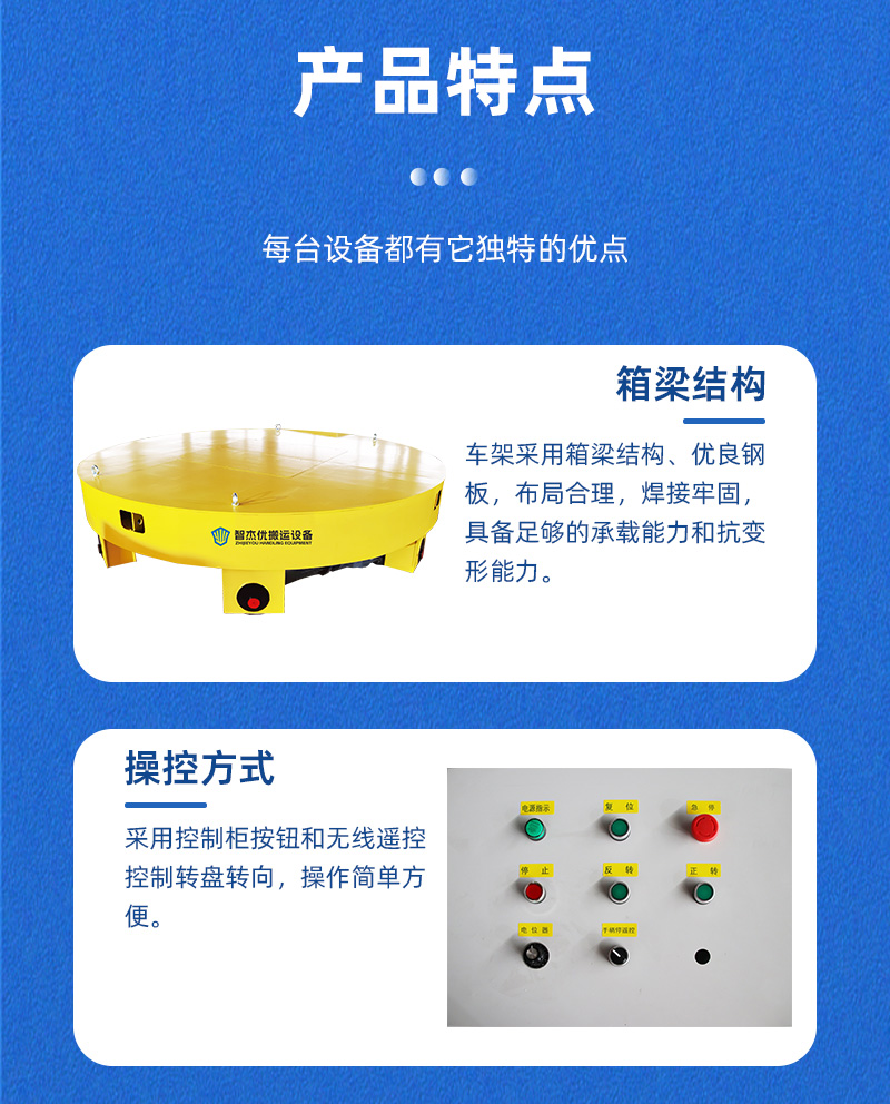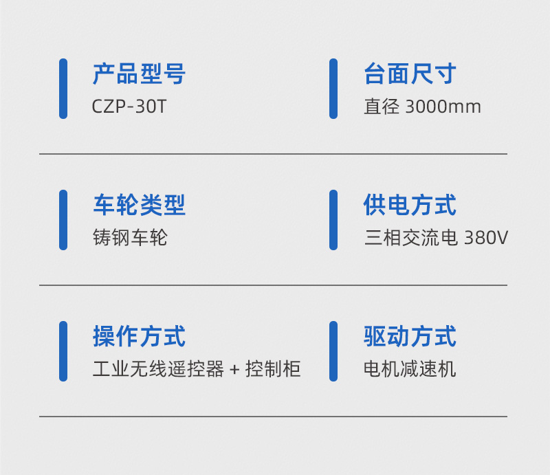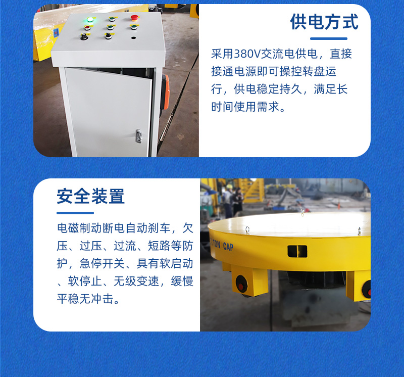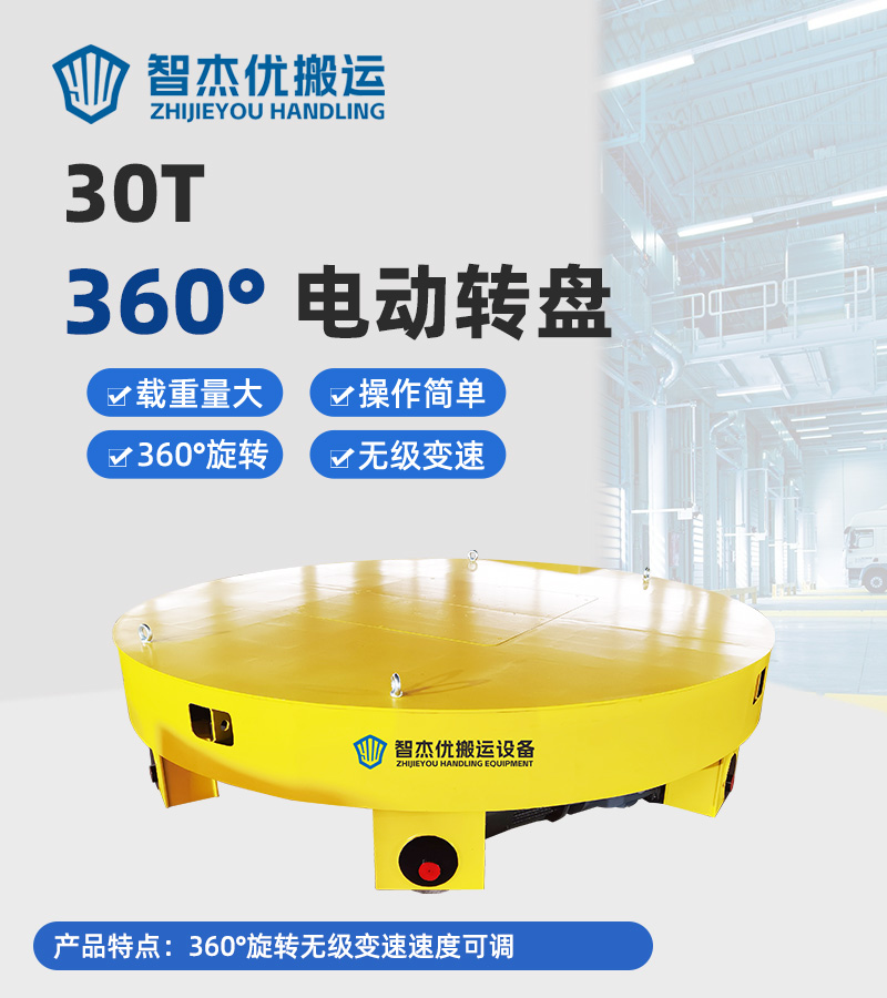 描   述: 大型重載電動轉(zhuǎn)盤,直徑3米額定載重30噸,主要用于大型設(shè)備的裝配及零部件的搬運,三相交流電380V電源供電,滿足全天候連續(xù)作業(yè)需求,它可以輕松承載各種重型零件,并將其***地旋轉(zhuǎn)到所需的位置,協(xié)助工人將各種部件組裝,確保加工精度及效率。
