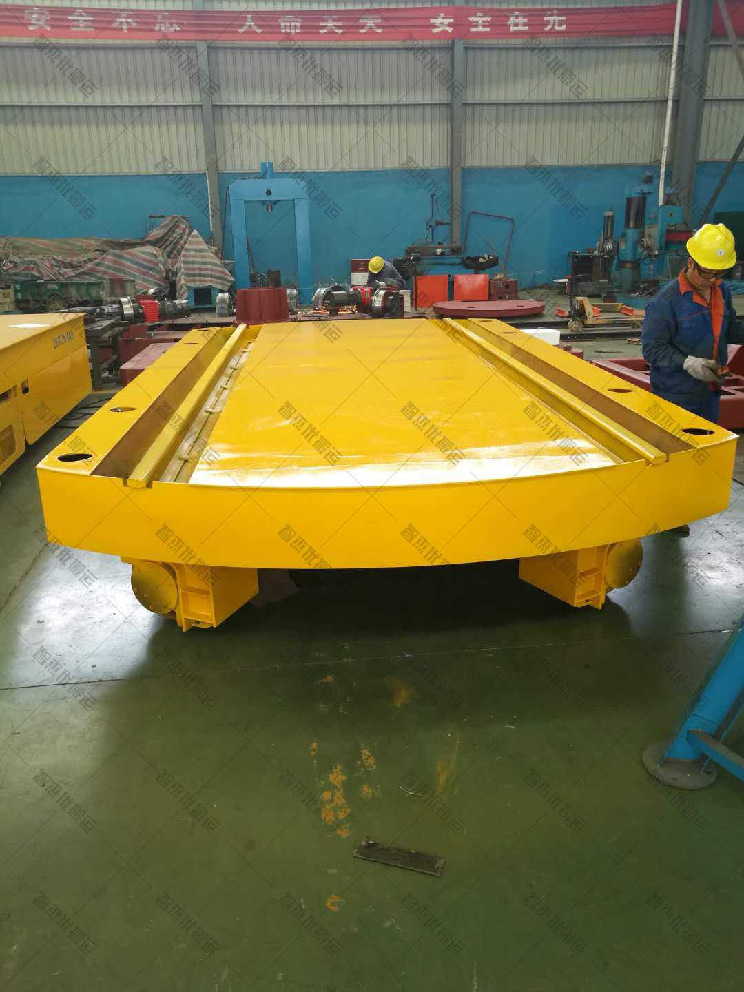 CZP電動(dòng)轉(zhuǎn)盤為電動(dòng)平車的配套裝備。當(dāng)車間內(nèi)平面工藝布置需要電動(dòng)平車做較小角度轉(zhuǎn)彎,其轉(zhuǎn)彎電動(dòng)平車也不能滿足其要求時(shí),可配置轉(zhuǎn)盤,電動(dòng)平車在轉(zhuǎn)盤上可做度轉(zhuǎn)向。
