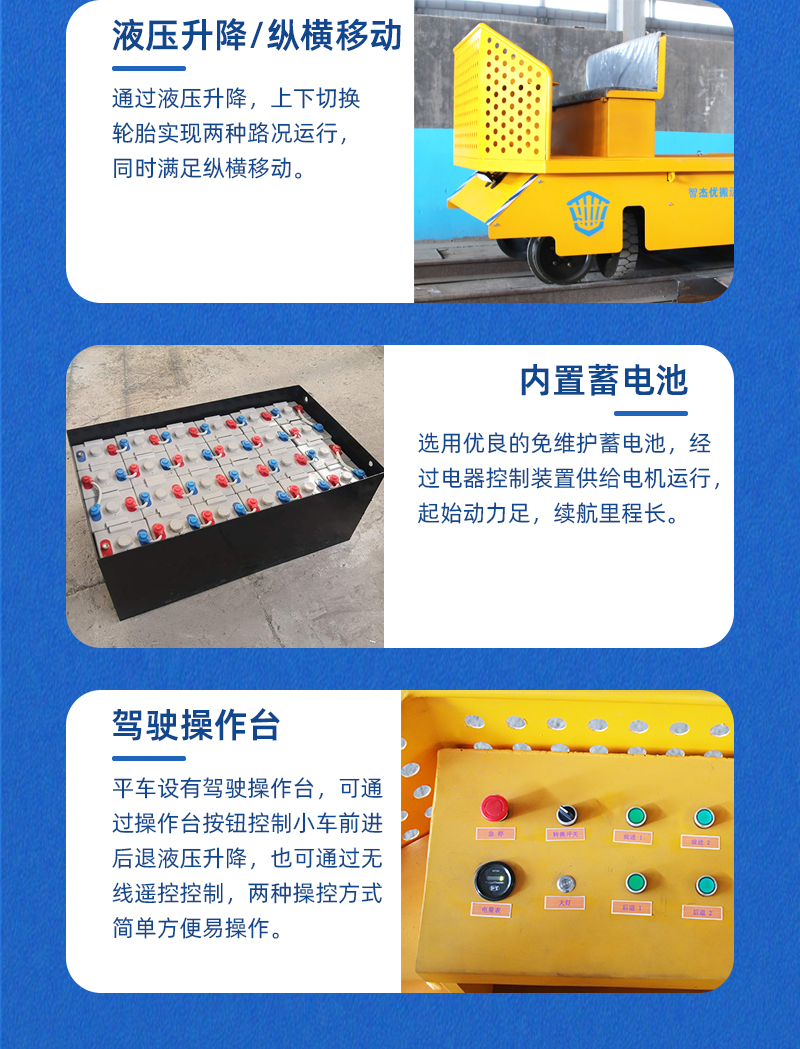 描   述: 公鐵兩用電動(dòng)平車(chē),公路鐵路都能跑!這種車(chē)輛通過(guò)一套驅(qū)動(dòng)系統(tǒng)實(shí)現(xiàn)公路和鐵路兩種狀態(tài)的轉(zhuǎn)換!2組車(chē)輪一鍵切換,兩種路況輕松應(yīng)對(duì),無(wú)線遙控操作按鈕兩種操控方式簡(jiǎn)單方便,讓你的車(chē)間運(yùn)輸效率大大提高!