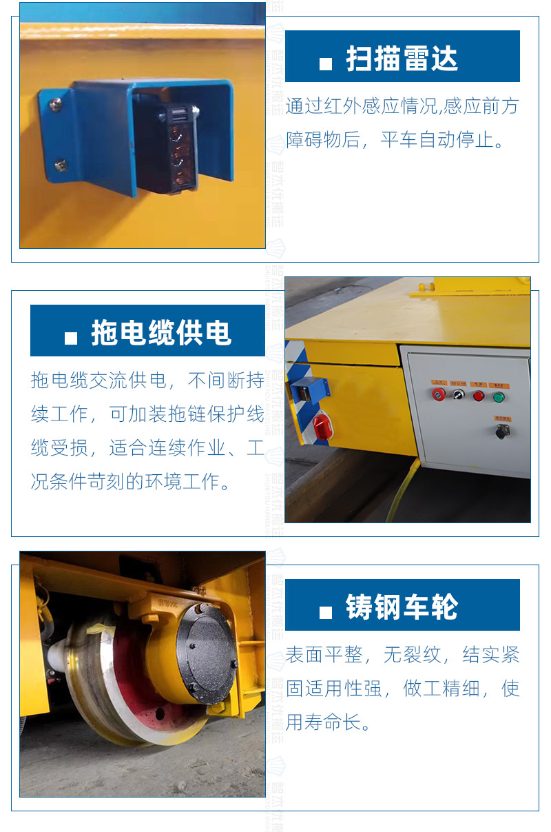 公司保障:電動平車、軌道平車的承重安全系數(shù)不低于60%