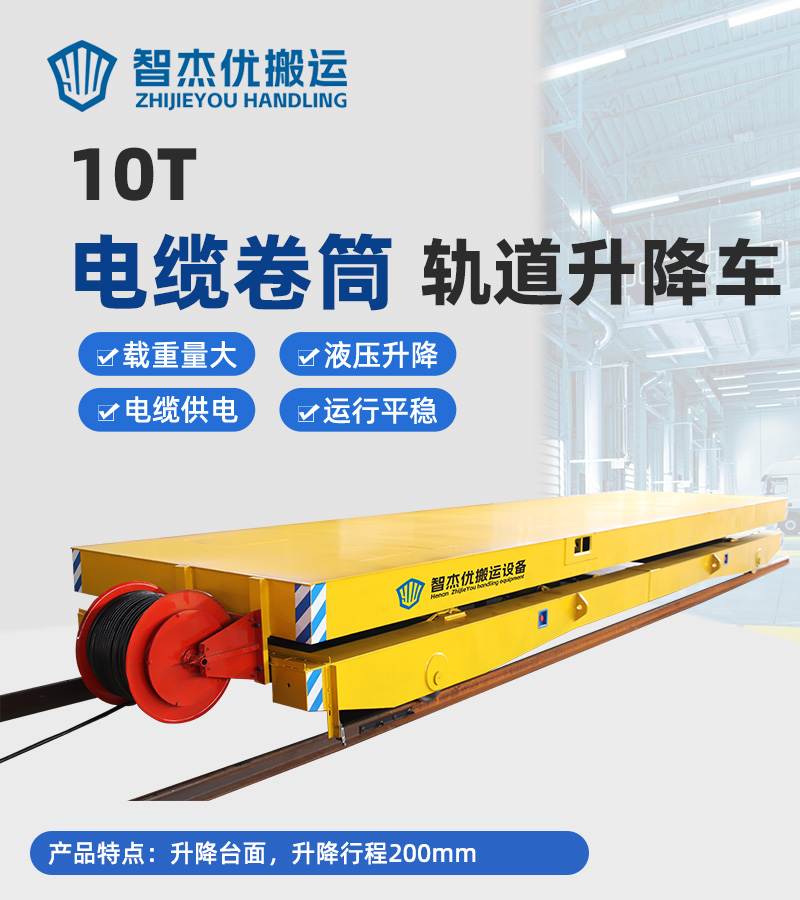 熱線:15517329551 智杰優(yōu)搬運(yùn)為鋼結(jié)構(gòu)加工企業(yè)定制的電纜卷筒軌道升降車,整車長(zhǎng)8米寬2.1米高0.7米載重10噸,主要用于車間生產(chǎn)線之間鋼材原料的運(yùn)輸作業(yè),平車設(shè)有升降裝置可根據(jù)需求調(diào)整載貨平臺(tái)高度,升降行程200mm,適應(yīng)不同高度的裝卸作業(yè),增加了設(shè)備的靈活性,電纜卷筒供電,卷筒自動(dòng)收放電纜線避免纏繞和損壞延長(zhǎng)了電纜的使用壽命,同時(shí)也保證了供電的穩(wěn)定性,線控手柄操作平車前進(jìn)后退簡(jiǎn)單方便,雙組行程開(kāi)關(guān)可實(shí)現(xiàn)起始終點(diǎn)定點(diǎn)???。