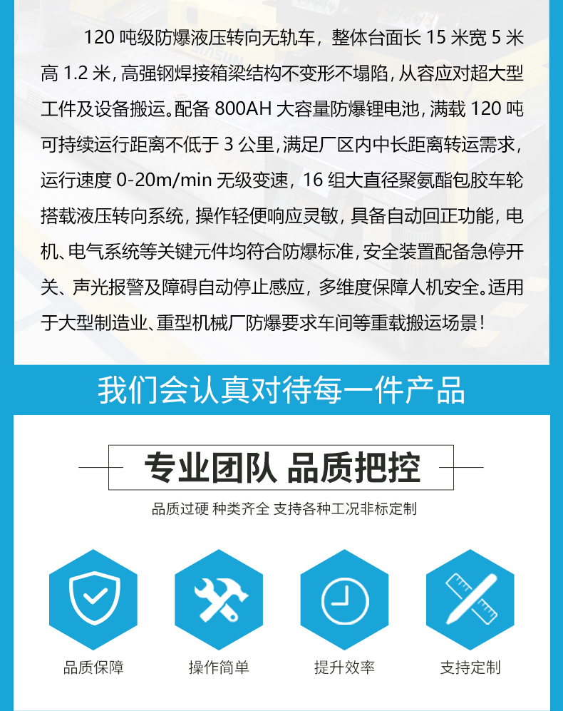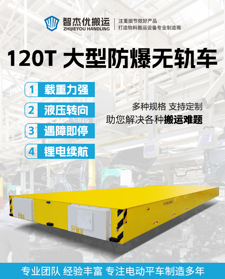 描   述: 120噸級防爆液壓轉(zhuǎn)向無軌車,集***承載、防爆安全與智能控制與一身的大型重載無軌車,適用于大型制造業(yè)、重型機械廠、鋼結(jié)構(gòu)施工、防爆要求車間等重載搬運場景!
