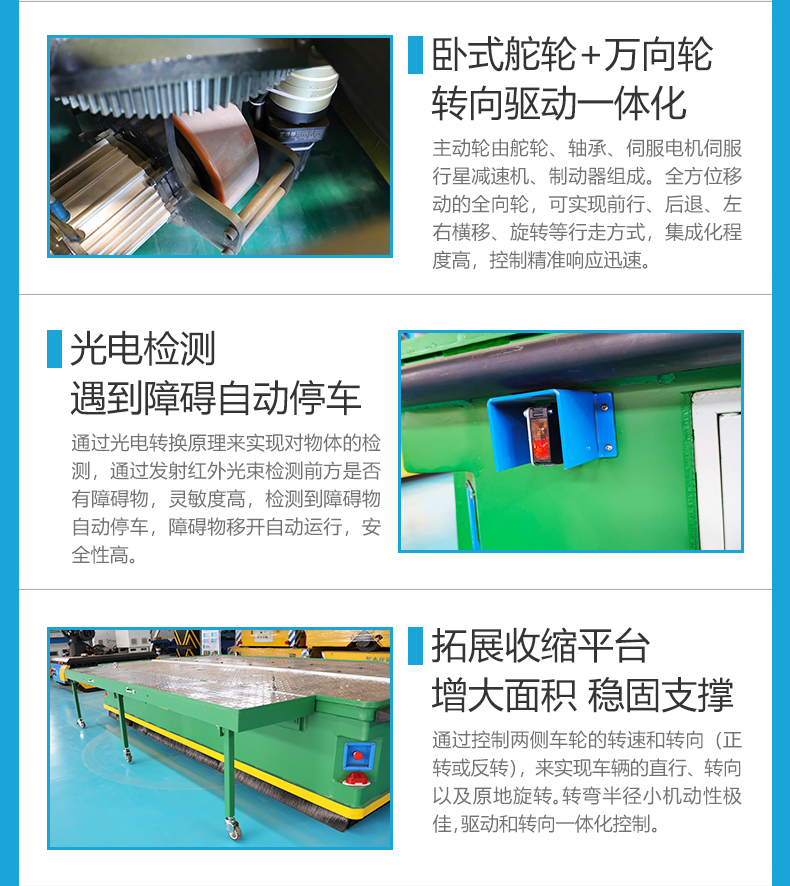 描   述: 智能搬運,***! 臺面一側(cè)配備可折疊平臺,物料裝卸增大操作面積提供穩(wěn)固支撐力,可拆卸蓄電池組供電,便于快速更換備用電池保障續(xù)航,搭載舵輪萬向輪組,驅(qū)動轉(zhuǎn)向一體化,縱橫移動、原地旋轉(zhuǎn)極大減少繁瑣調(diào)整,效率提升200%。