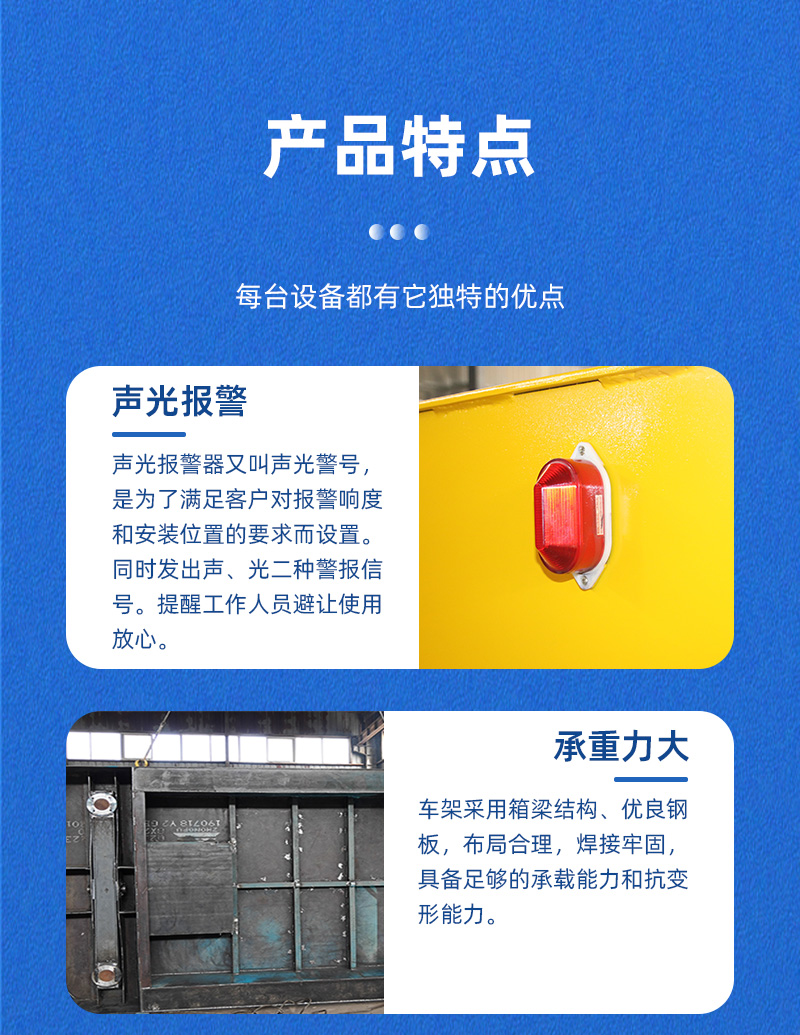 公司保障:電動(dòng)平車、軌道平車的承重安全系數(shù)不低于60%