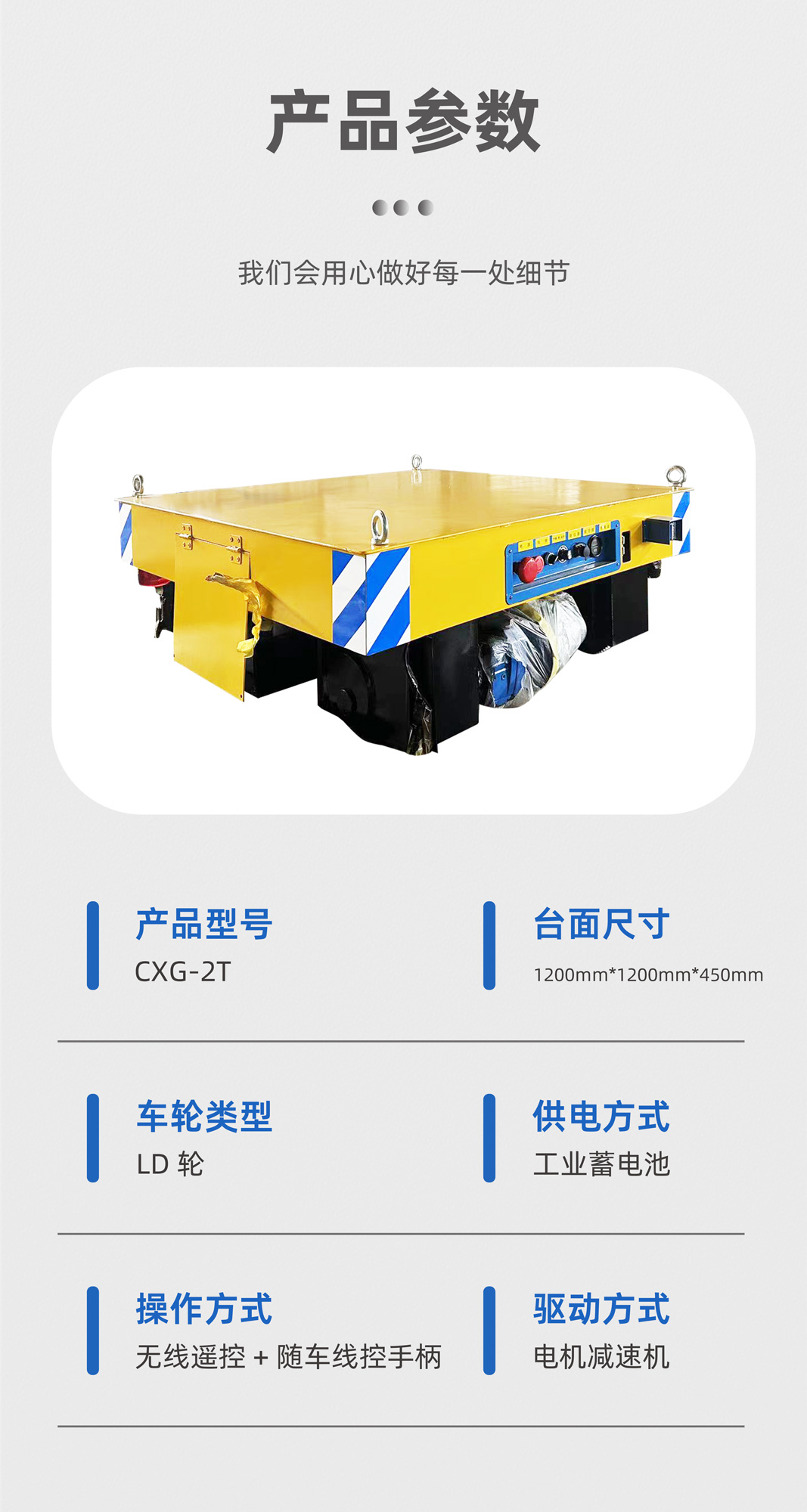 這是一臺(tái)小型軌道搬運(yùn)車載重試機(jī)現(xiàn)場(chǎng),整車長(zhǎng)1.2米寬1.2米高0.45米載重2噸,箱梁結(jié)構(gòu)穩(wěn)定牢固,不易變形;無線遙控平車前進(jìn)后退,采用鑄鋼車輪,硬度高耐磨損承重力強(qiáng),電機(jī)減速機(jī)驅(qū)動(dòng)平車進(jìn)行搬運(yùn)作業(yè),限位開關(guān)可實(shí)現(xiàn)平車定點(diǎn)??孔鳂I(yè),前后配備光電檢測(cè)遇障自停,聲光報(bào)警保障安全,該系列電動(dòng)平車還可進(jìn)行功能升級(jí)、升降臺(tái)面、弧形軌道運(yùn)行等。