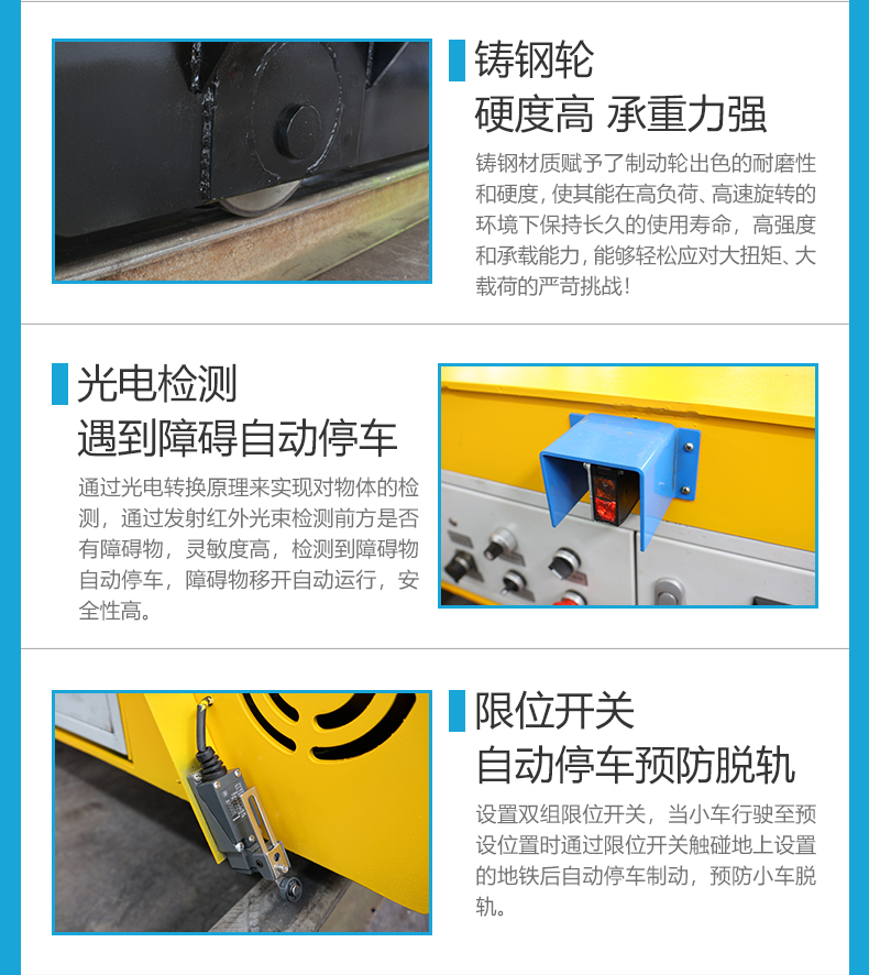 公司保障:電動平車、軌道平車的承重安全系數(shù)不低于60%