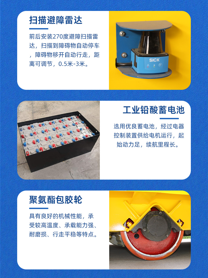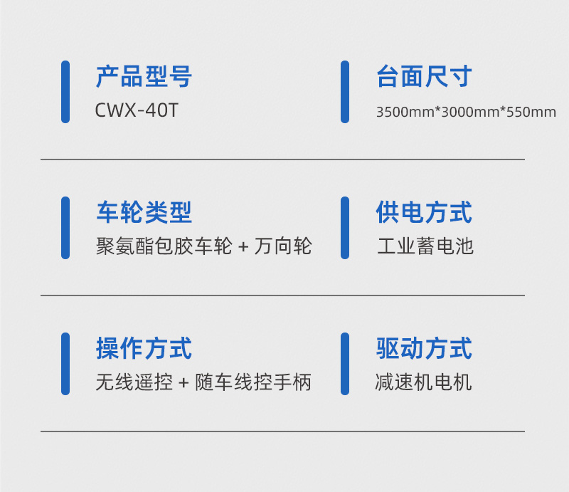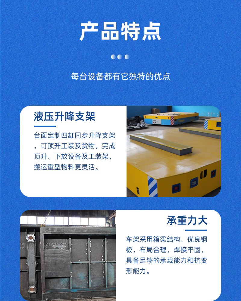 熱線:15517329551 這是一臺液壓升降全向無軌車客戶使用現(xiàn)場,長3.5米寬3米高0.55米額定載重40噸,主要用于車間內(nèi)風(fēng)電設(shè)備部件的轉(zhuǎn)運作業(yè)。電機減速機驅(qū)動平車運行,蓄電池供電運行路線不受線纜限制,臺面定制液壓升降支架,可頂升工裝架,升降行程200mm,輪系采用聚氨酯包膠輪搭配萬向輪可實現(xiàn)全向運行,車間柱子阻礙下也能靈活調(diào)整方向輕松通過。無線搖桿操作控制平車運行及升降,可鉆入工裝下,完成頂升、運輸、下放工裝等動作,車體四周設(shè)有防撞滑塊,急停開關(guān),前后安裝270度避障雷達(dá),遇障即停,確保全向車安全往返運輸作業(yè)!