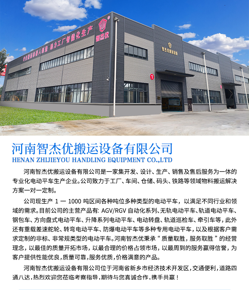 河南智杰優(yōu)搬運設備有限公司以“質(zhì)量取勝,服務取勝”的經(jīng)營理念,為了客戶的利益,公司建立了一整套快速的質(zhì)量信